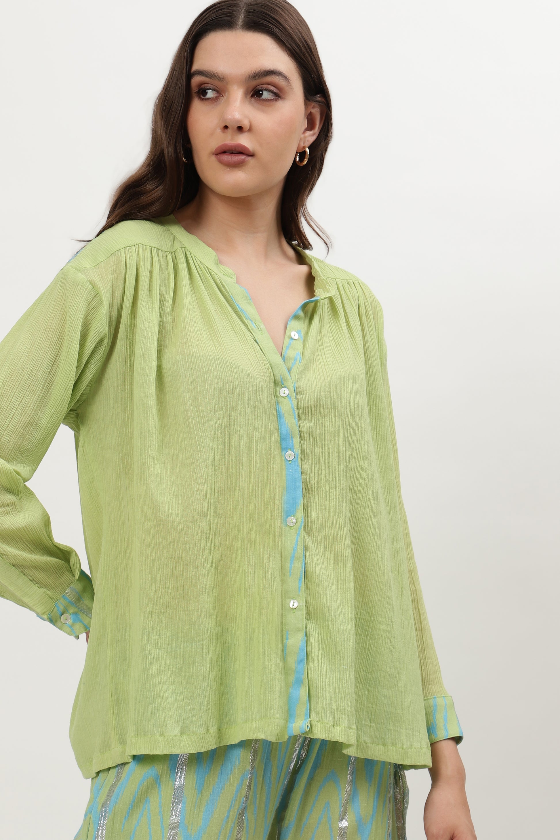 The Amy Shirt by MUSAL is a versatile piece featuring a lively ikat print. Perfect for both work and casual wear, this shirt adds a pop of color and pattern to your wardrobe, making it a standout piece for various occasions.
