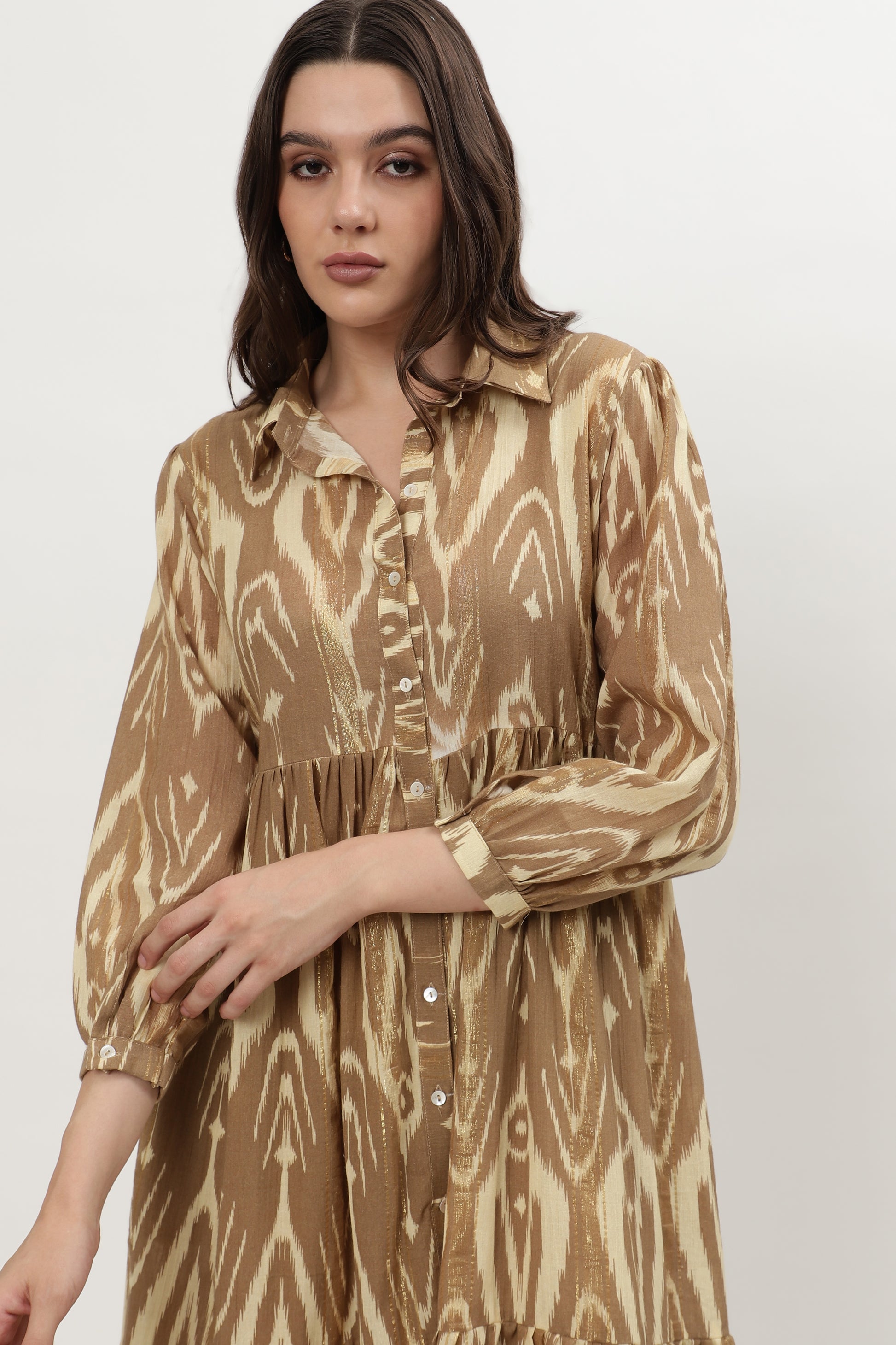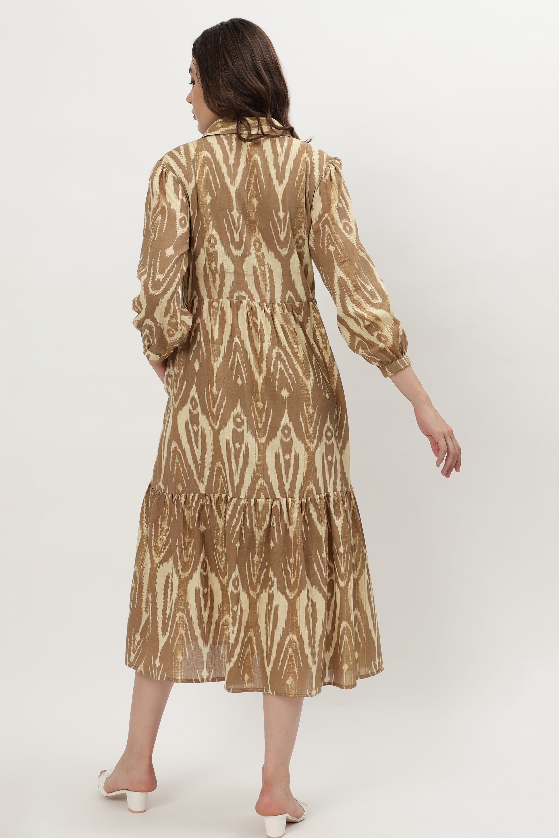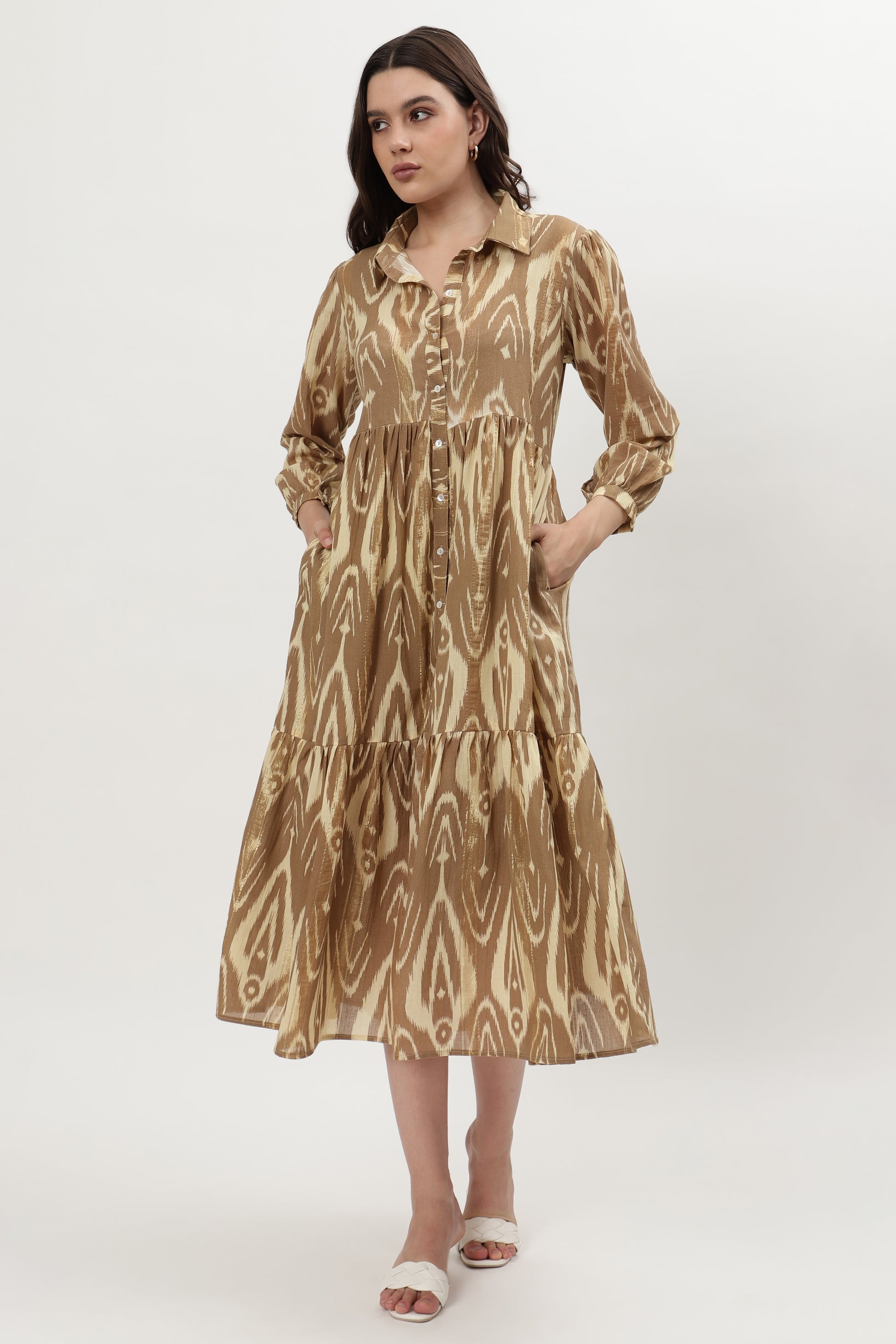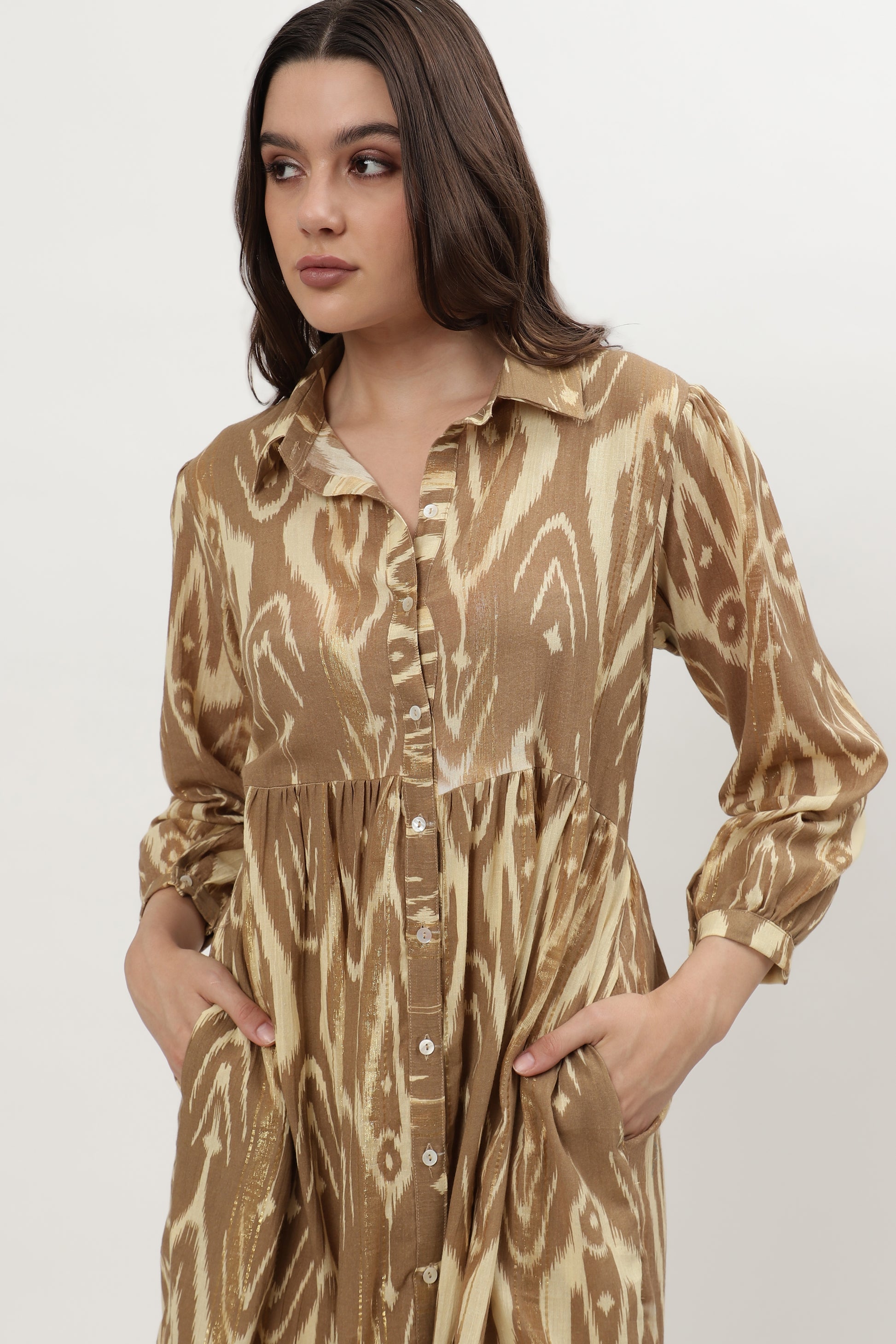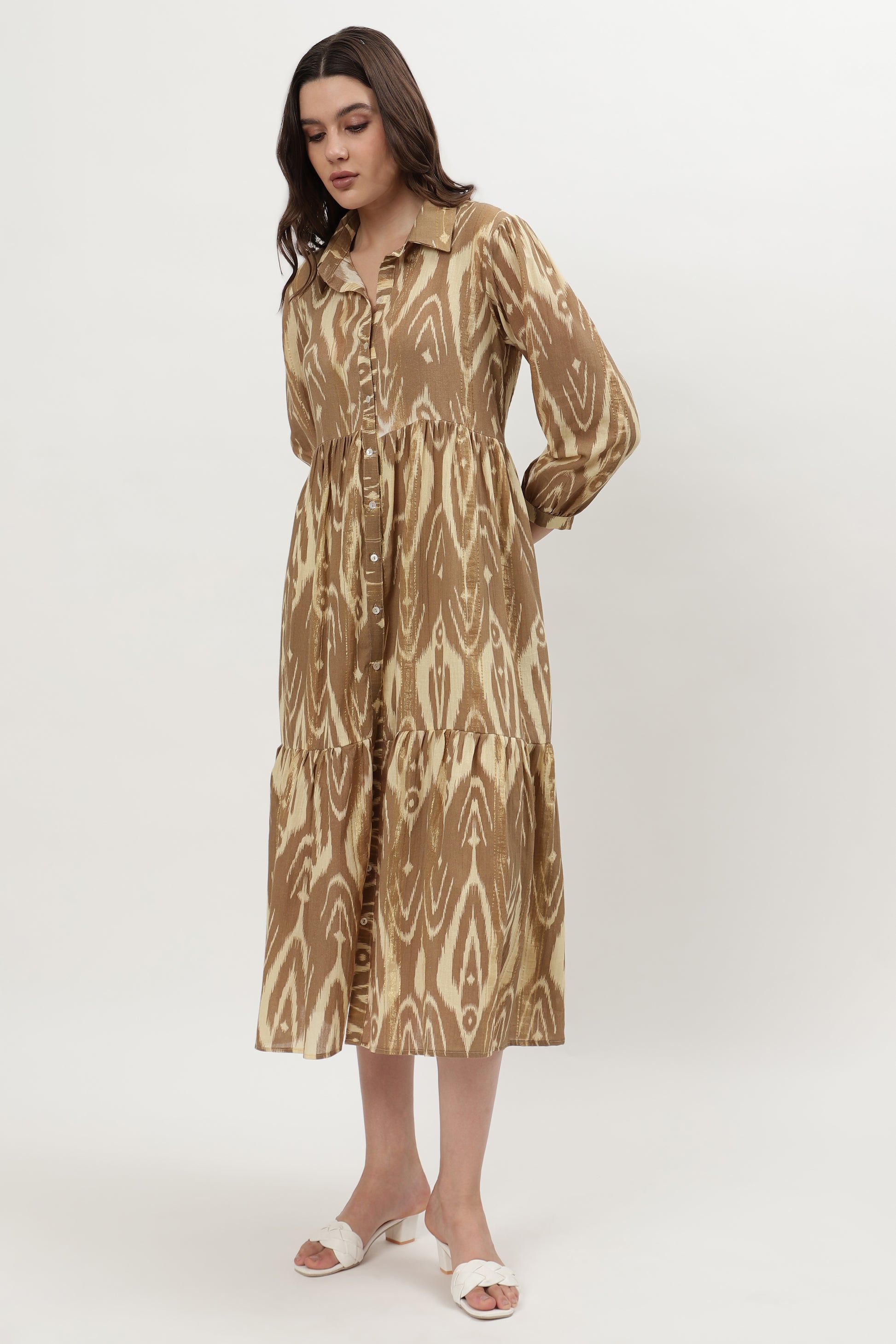 The Ariana Maxi Dress by MUSAL is a chic and modern piece that showcases a vibrant ikat print. This dress is perfect for casual outings, brunches, and daytime events, offering a comfortable fit with a stylish flair.