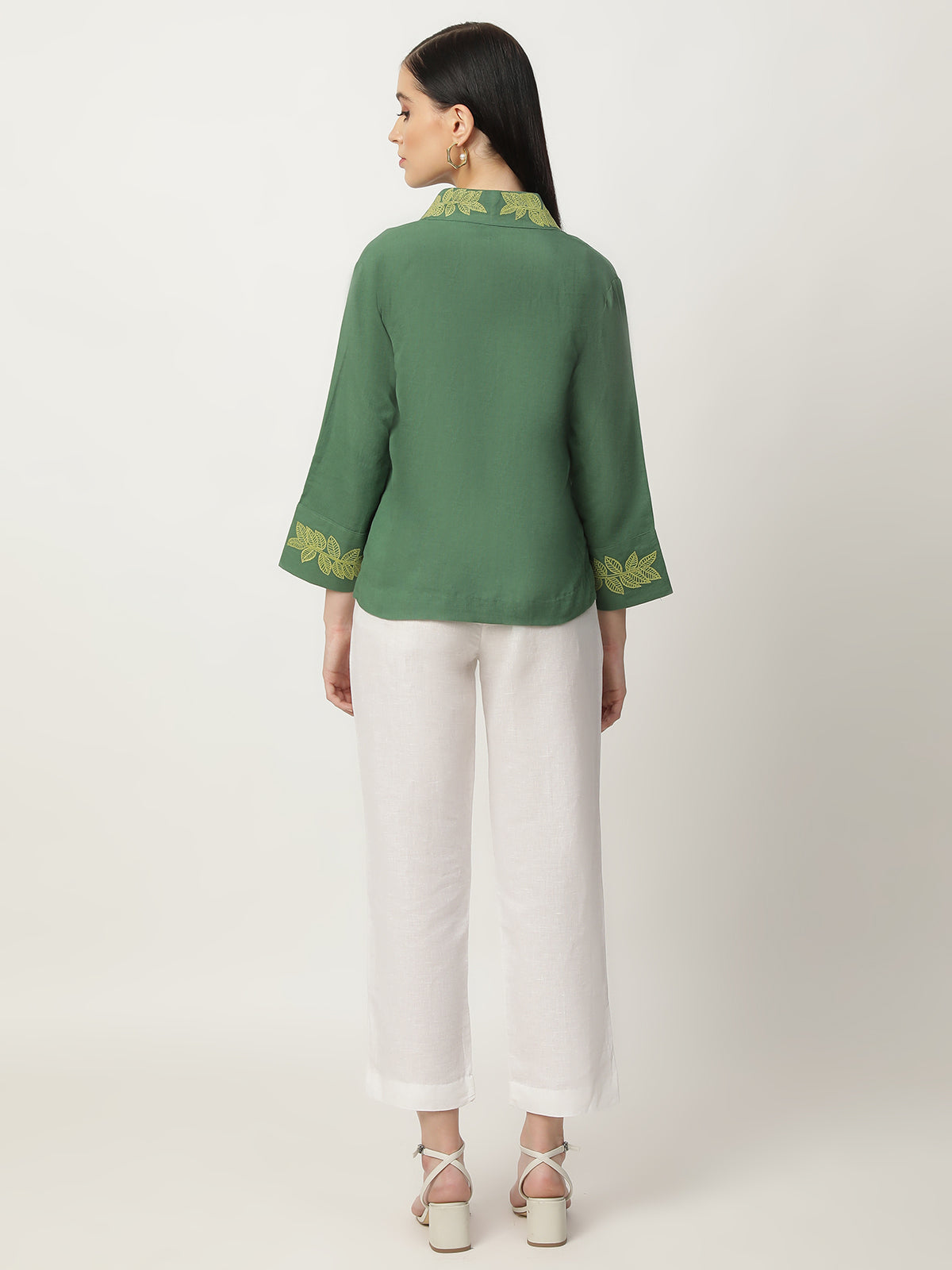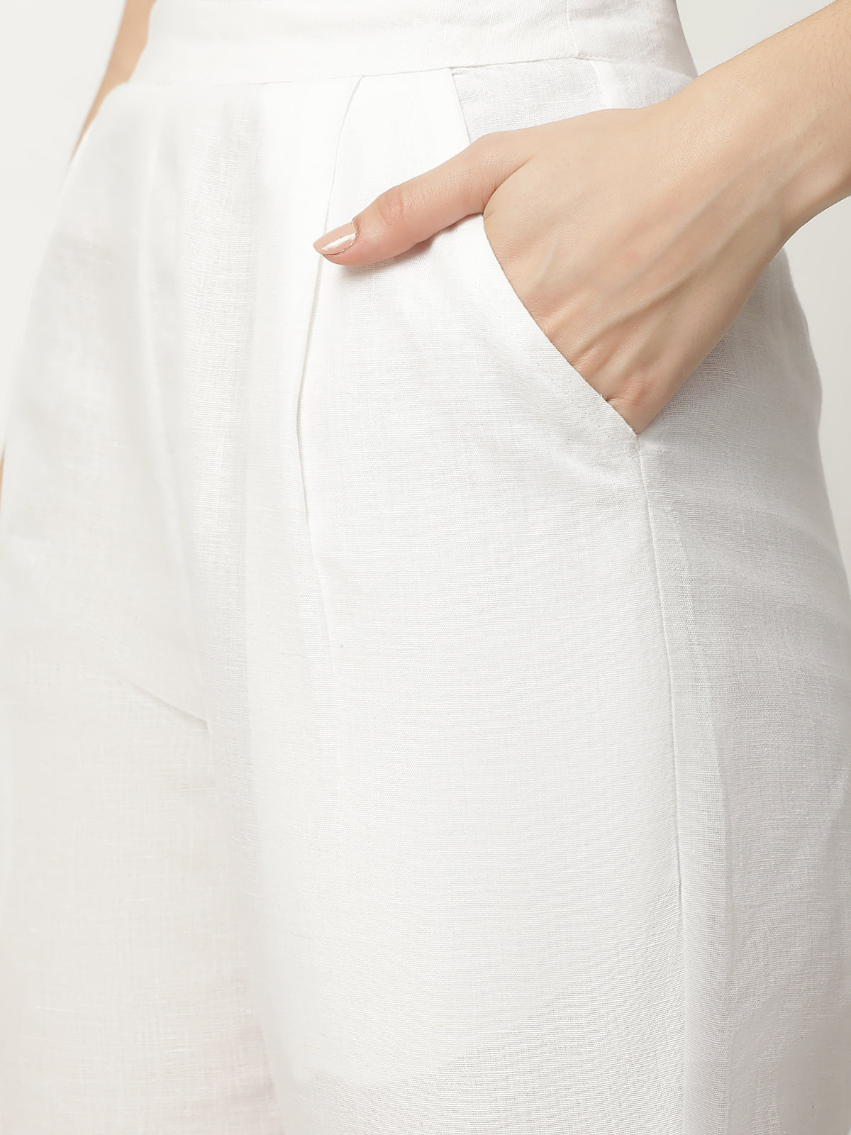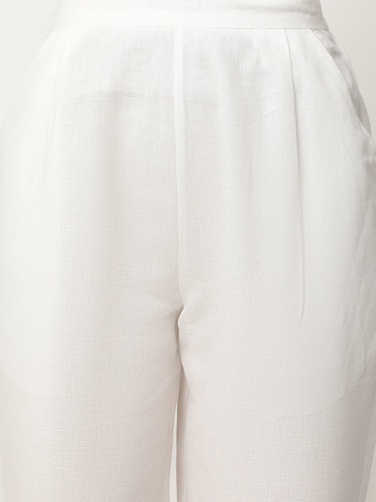 straight ivory colour pants with pockets,side slit and embroidery detailing