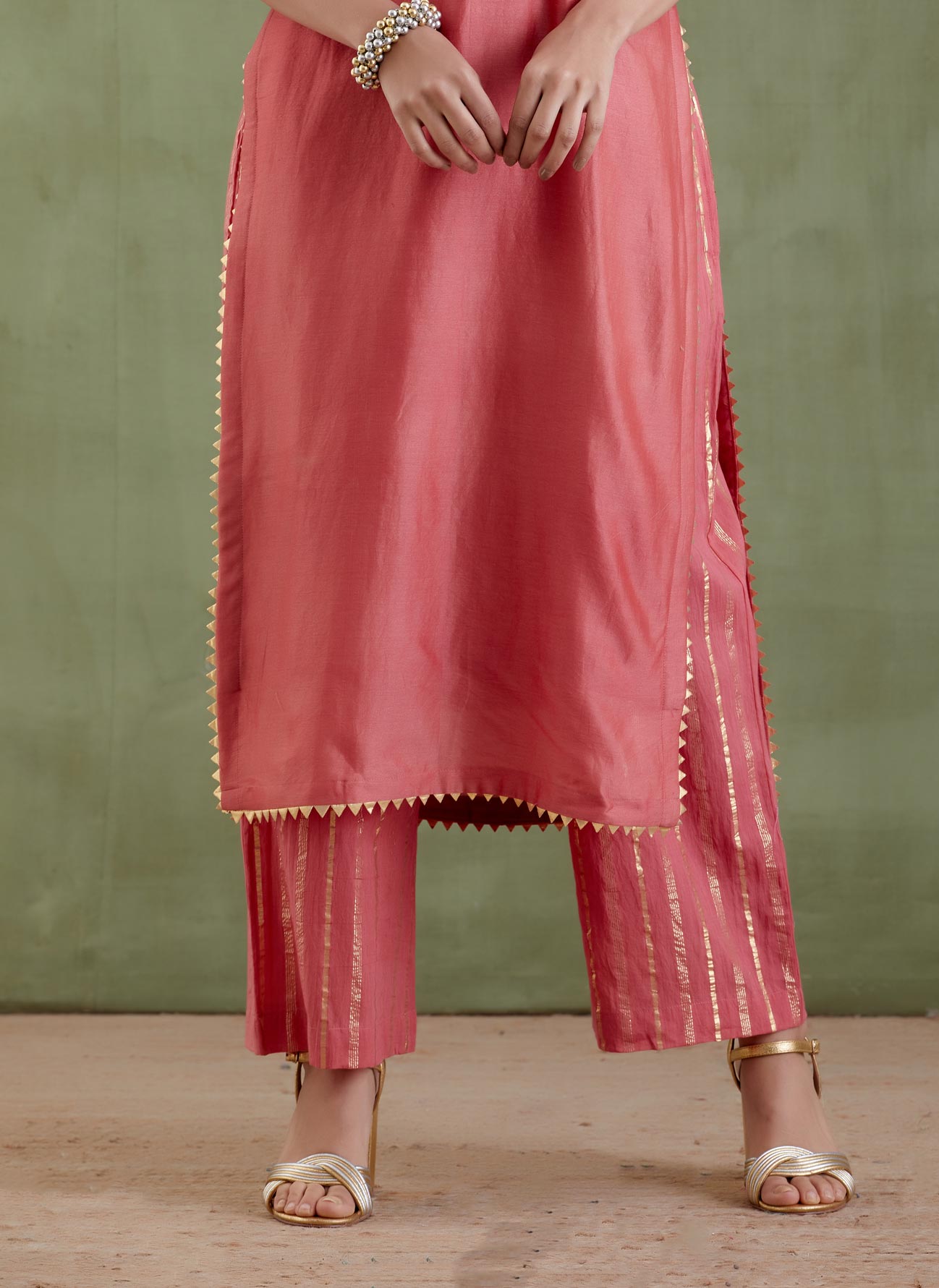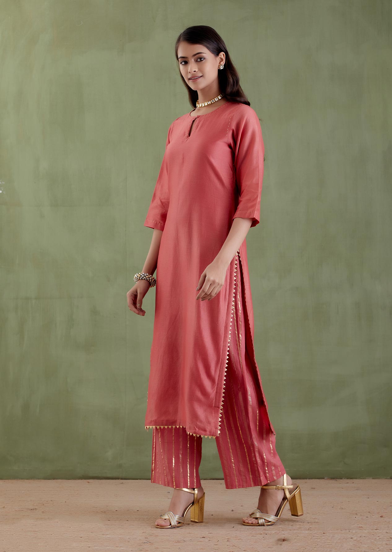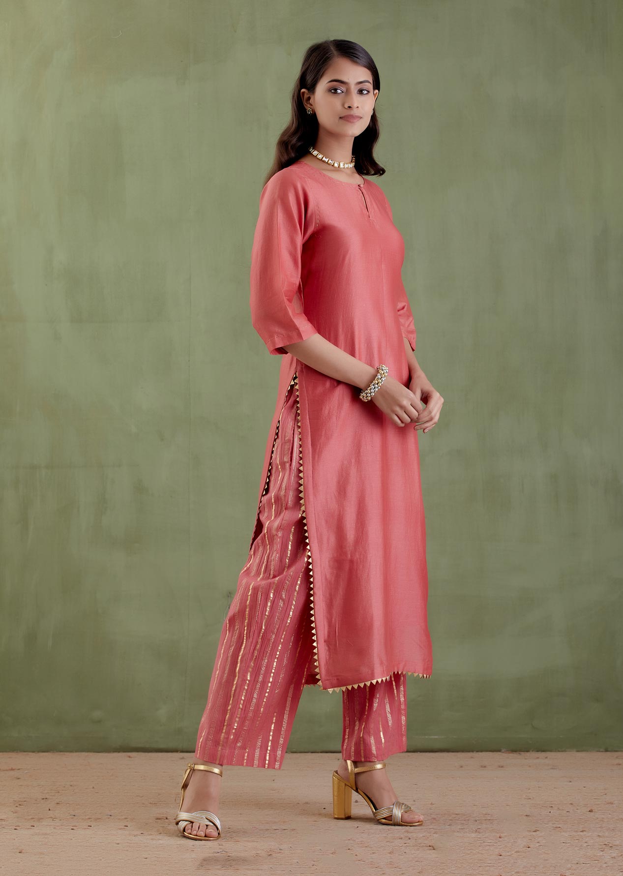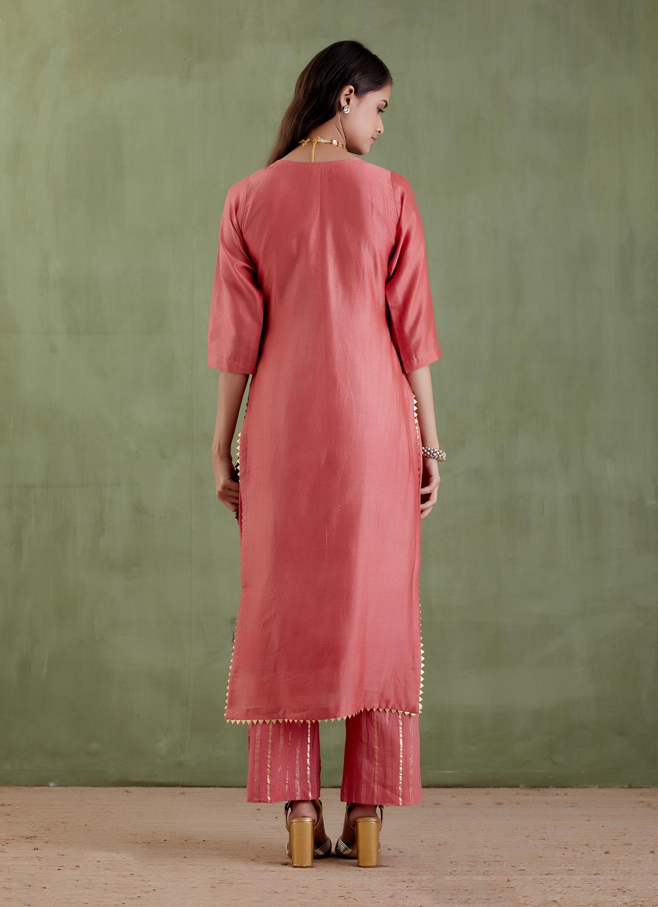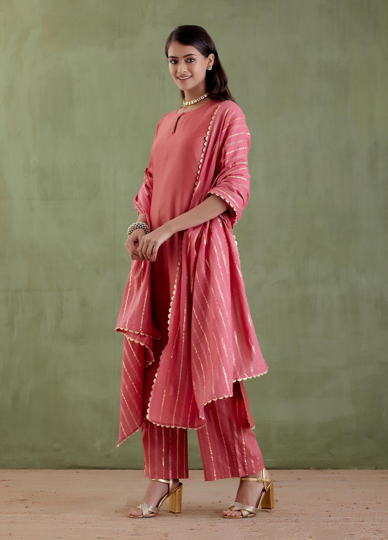 The Durgavati Kurta Set by MUSAL is an exquisite three piece kurta set ensemble that blends heritage with contemporary sophistication. With its stunning kurta, matching pants, and a delicate dupatta, this set is a perfect choice for those who seek effortless elegance at festive celebrations and weddings.