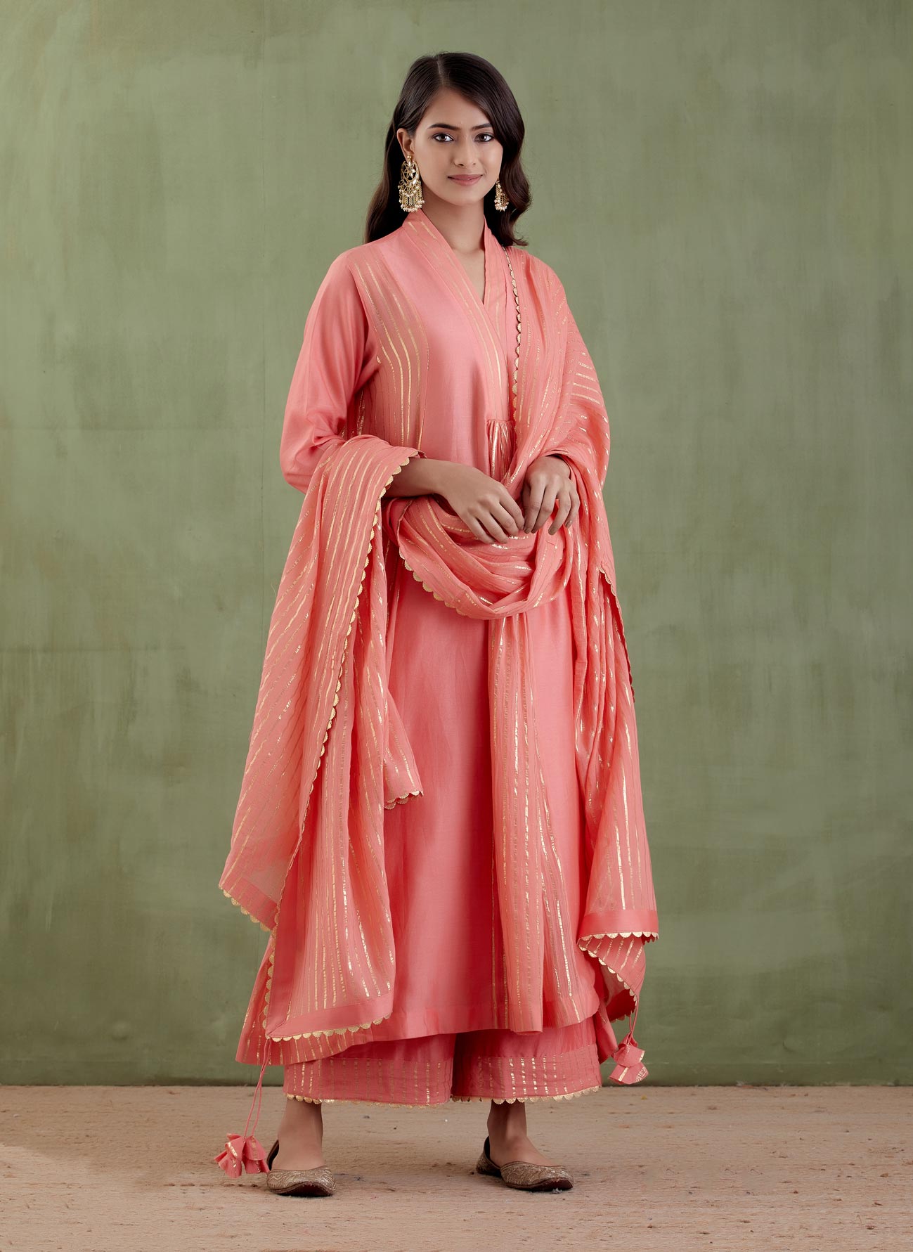 Length: The length of the kurta is 45"-46" depending on the size. The length of the pants is 38"-39" depending on the size. The dupatta is 2.5 meters in length.